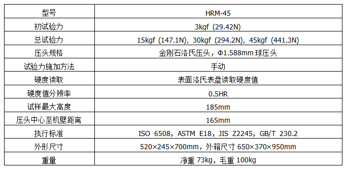 HRM-45表面洛氏硬度計是一種普及型的表面洛氏硬度測試儀器。適用于材料的表面洛氏硬度試驗,無需電源,其施加試驗力的速度由液壓緩沖器來調(diào)節(jié),試驗力變換通過變荷手輪的旋轉(zhuǎn)獲得。本儀器操作簡便,性能穩(wěn)定,使用廣泛。
