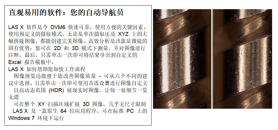 借助 DVM6,您可在一瞬間從大圖獲取最小的細(xì)節(jié)。即使需要切換物鏡,您也能無縫開展工作,因?yàn)闃悠?br>