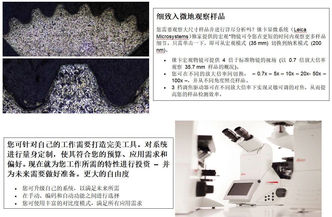 在競爭中保持領先是您事業(yè)前進的動力。無論您從事金相學、醫(yī)療設備制造還是微電子領域,速度都顯得至關重要。您可根據(jù)自身需求定制徠卡這款高度模塊化的倒置式顯微鏡。它將徠卡優(yōu)異的光學品質(zhì)、豐富的對比度模式以及直觀易用的軟件集于一身,有助于加速您的工作流程。